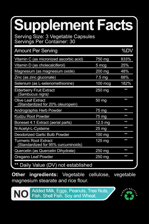 These key ingredients work with other supportive nutrients, including Vitamin D, magnesium, selenium, and olive leaf to shield your wellness daily.